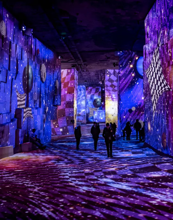 Offer your guests an evening of discovery—an exceptional journey into the heart of art. The majestic mineral decor of the Carrières des Lumières will provide your guests with a unique audio-visual experience. To add a touch of originality to your evening, the Carrières des Lumières team offers you its digital creation expertise to create your very own show.